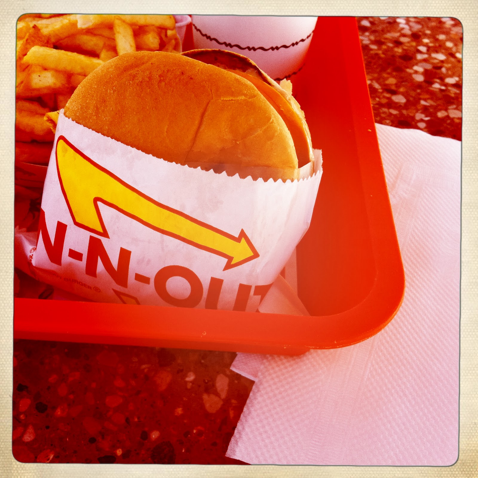 This was lunch: A hamburger, fries and a chocolate shake from In-N-Out Burger. (Note: I got a single hamburger, and not the double-double!)