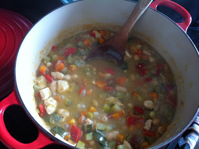 - Add zucchini and next 9 ingredients (zucchini through broth); bring to a boil. Cover, reduce heat and simmer 30 minutes or until vegetables are tender.