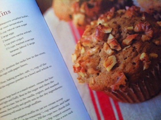 Alas, I missed Saturday’s book signing due to a combination of a broody hen and the realization that the event location was two blocks from a Seattle Sounders game (read: traffic and parking nightmare). Until I get my paws on the new book, I will content myself by delving more deeply into Heidi’s previous book, Super Natural Cooking. It features one of the best muffin recipes ever created, IMO. It has 3/4 cup sugar, which sort of puts into “treat muffin” territory for me, but that’s less sugar than a lot of muffin recipes have! If you aren’t familiar with “white whole-wheat” flour, it’s main benefit is that it offers the nutrition of whole-wheat flour, while being less heavy. That’s super for people who have trouble transitioning from refined white flour, but I don’t have that problem, so I always use regular whole wheat flour or whole wheat pastry flour, and the recipe turns out just fabulous!