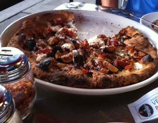 Every year, we look forward with bated breath to the Calabrese pizza. Olive oil, goat cheese, prosciutto, balsamic vinegar reduction, rosemary…and figs. The first time I had this pizza, my in-laws were with us, and that’s the pizza they ordered. I was all like, “Figs on a pizza? Uh, okaaaaaay.” I quickly changed my tune when I had a slice, because it was a slice of heaven!