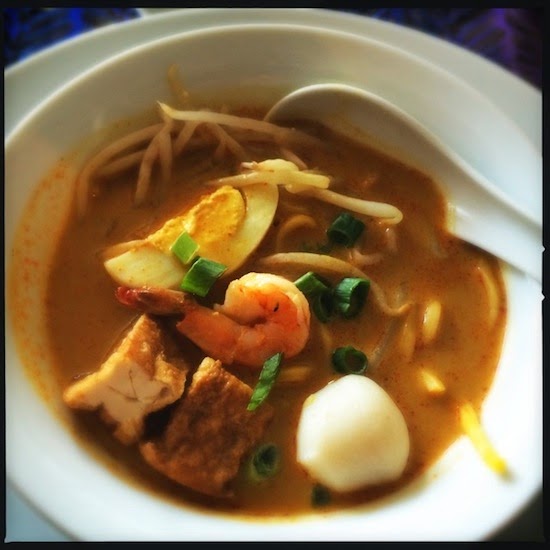 Curry Laksa (rice noodles with spicy coconut broth and flavored with mint, ginger flowers and lemongrass):