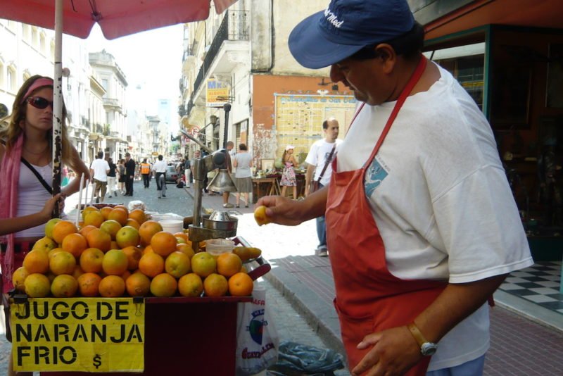 Oh, and about those tanks (well, specifically the storage tanks, because there are different tanks used for different purposes at various points of the process). Imagine standing in a room surrounded by four white tanks, each one 65 feet wide by 75 feet tall. It was like something out of science fiction…so cool! Oh, how I wish I had a photo (not that it would have captured the true magnitude). Instead, I’m going to share a photo from 10 years ago, when we were in Buenos Aires. I do think this is where my love of OJ truly began (let’s just say a childhood of “from concentrate” juice wasn’t overly inspiring).