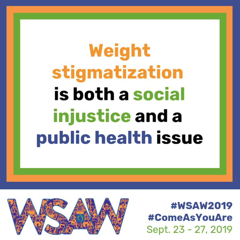 Weight stigma happens, well, everywhere. In healthcare. Among family and friends. In education and employment. On social media. In housing and transportation. In the fitness industry. That’s to name a few. If you’re on social media, you can follow #WSAW2019 and #ComeAsYouAre. And if you’re a registered dietitian (or other healthcare provider) who wants to learn more about weight stigma, a link to a hour long webinar I gave for Today’s Dietitian earlier this year is available below (and here). Now, here’s your reading list: