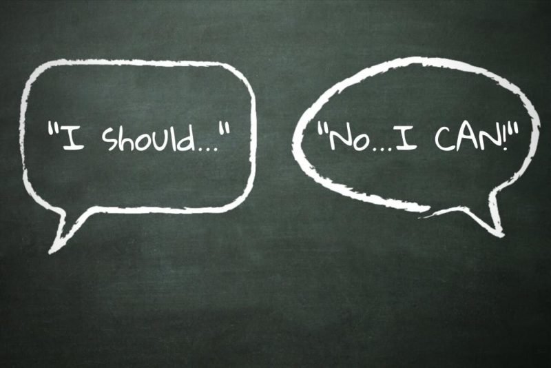 - Absolutist thinking (“I must eat perfectly or something bad will happen”). Use words like “can,” “is okay” and “may” instead of “must,” “ought to,” “should,” “need to,” “supposed to,” or “have to.”