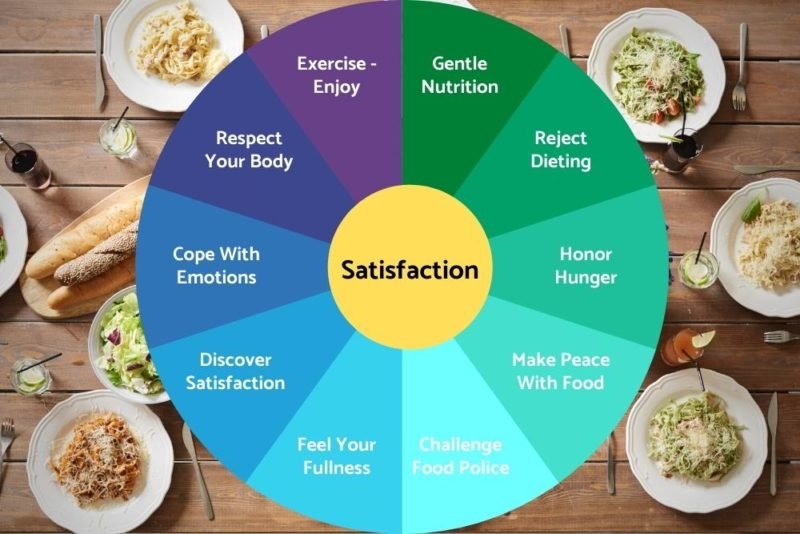 Satisfaction is so important to being an intuitive eater that dietitian Evelyn Tribole and Elyse Resch, the creators of the Intuitive Eating model and the co-authors of “Intuitive Eating,” it to be the hub of intuitive eating, as you can see in this illustration:
