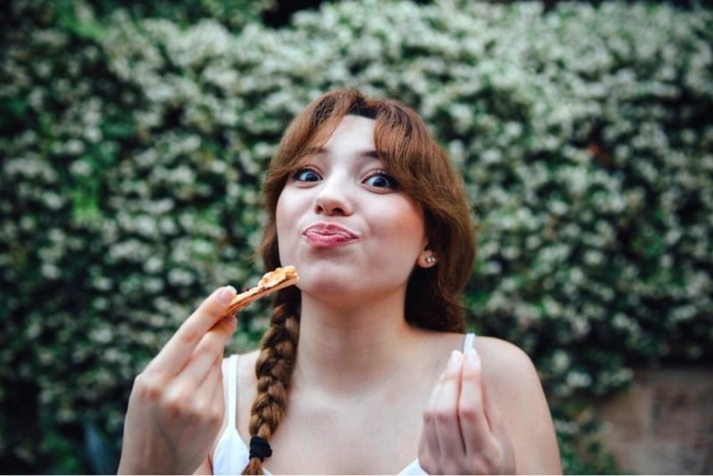 Now that she’s stopped restricting, and nourishes herself with delicious, nutritious food, she no longer has these binges. So she’s eating more in the sense that she eats enough food to be fully satisfied at every meal, and she doesn’t play the game of trying to make everything low-fat or low-carb anymore. This means she’s eating less in the sense that she’s not engaging in out-of-control eating episodes.