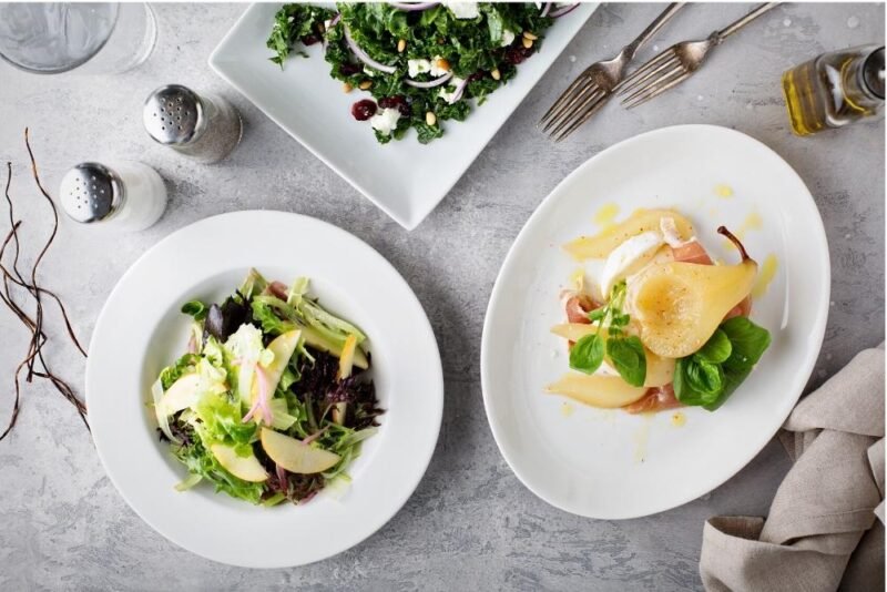 Who says salads are just for summer? It’s true that fresh summer produce is gone from the farmers markets (and if you still have tomato and cucumber plants in your backyard garden, they’re probably looking a little sad). Even though the nip in the air leads us towards warm, hearty soups, stews, braises and roasts, don’t take salads off the menu. A well-composed salad that blends seasonal produce with substantial add-ins can be just as satisfying in the cooler months.