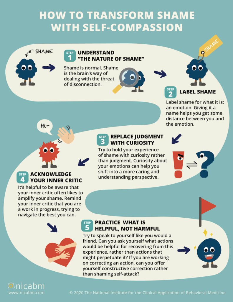 This infographic from the National Institute for the Clinical Application of Behavioral Medicine (NICABM) on transforming shame with self-compassion actually leads nicely into how to use self-compassion to motivate ourselves. (If you want a printable version, click on the link.)