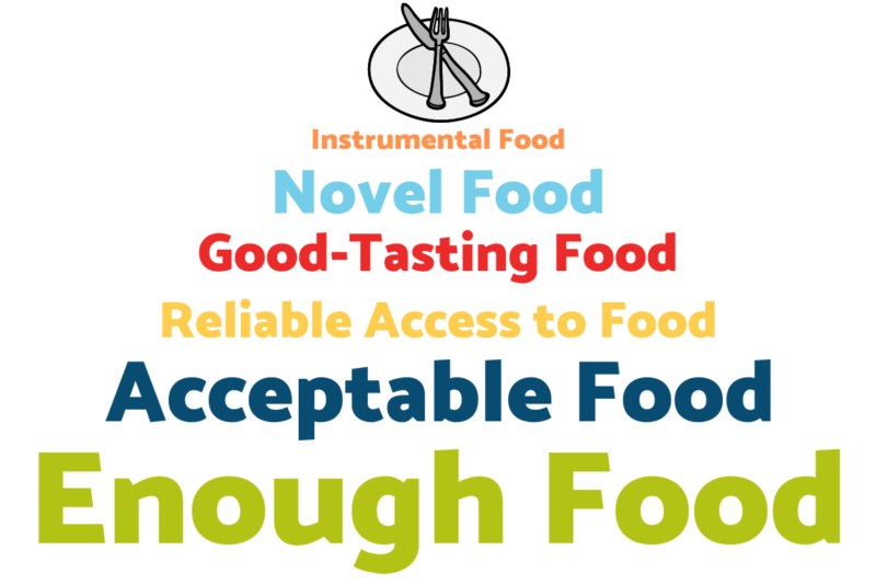 - Acceptable food. Once you have enough food, do you have enough acceptable food? This is the type of food you prefer, and food preferences vary from person to person.