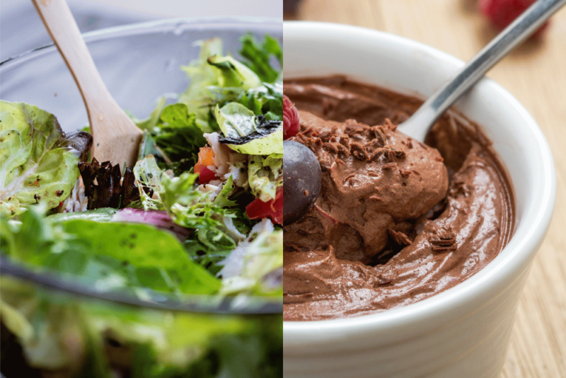 The subtler pleasure of the salad, combined with the pleasure of current and future good health, more than makes up for the more intense pleasure of decadent desserts.